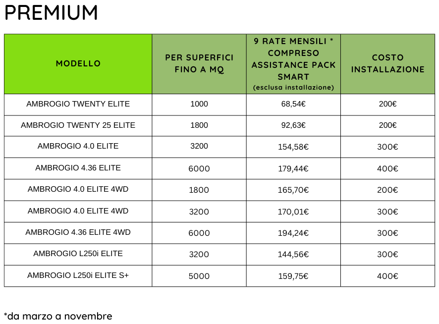 • Al termine della stagione (marzo- novembre) il cliente può restituire il robot senza pagare nulla